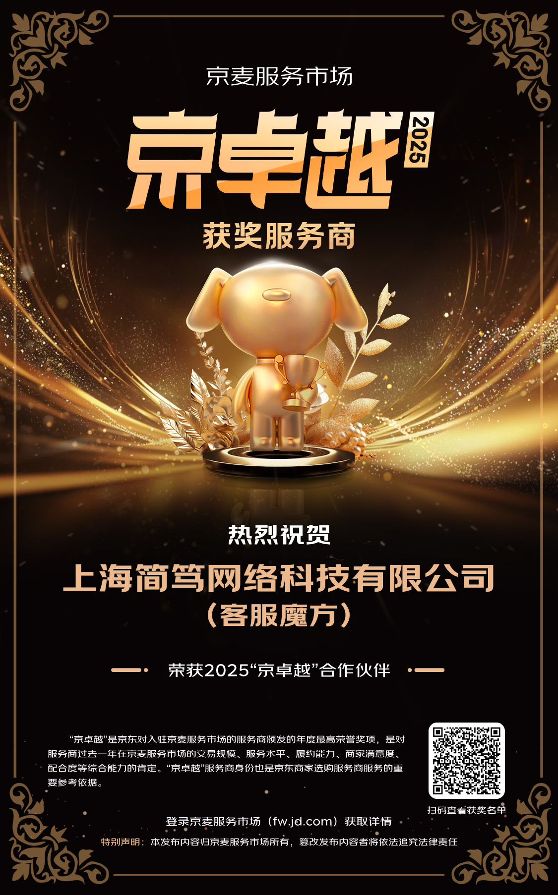 昨日,京東正式發(fā)布了年度京東服務(wù)市場(chǎng)“京卓越”服務(wù)商獲獎(jiǎng)名單。上海簡(jiǎn)篤網(wǎng)絡(luò)科技有限公司(簡(jiǎn)稱“簡(jiǎn)篤科技”),憑借卓越的智能軟件服務(wù)能力從眾企業(yè)中脫穎而出,第三次榮獲京東服務(wù)市場(chǎng)客服工具“京卓越”合作伙伴獎(jiǎng)。